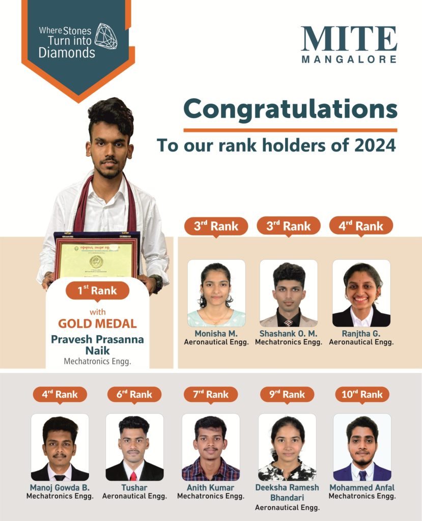 MITE believes in providing the best education to students and enable them to achieve an exuberant result in their lives. The institution is working on a multi-pronged strategy to achieve this goal. The Institution’s multiple efforts to shape skill and competence in students has resulted in excellent results year after year. Highly qualified teaching faculty with vast experience, industrial flair and great passion for teaching aids in inculcating right attitude and skill among the students. Interaction with industry and national and International universities of repute brings experiences to the classroom which limits education not to just theory at MITE. Unique focussed mentoring system shapes students in the right direction. The proof of the pudding is in the results.