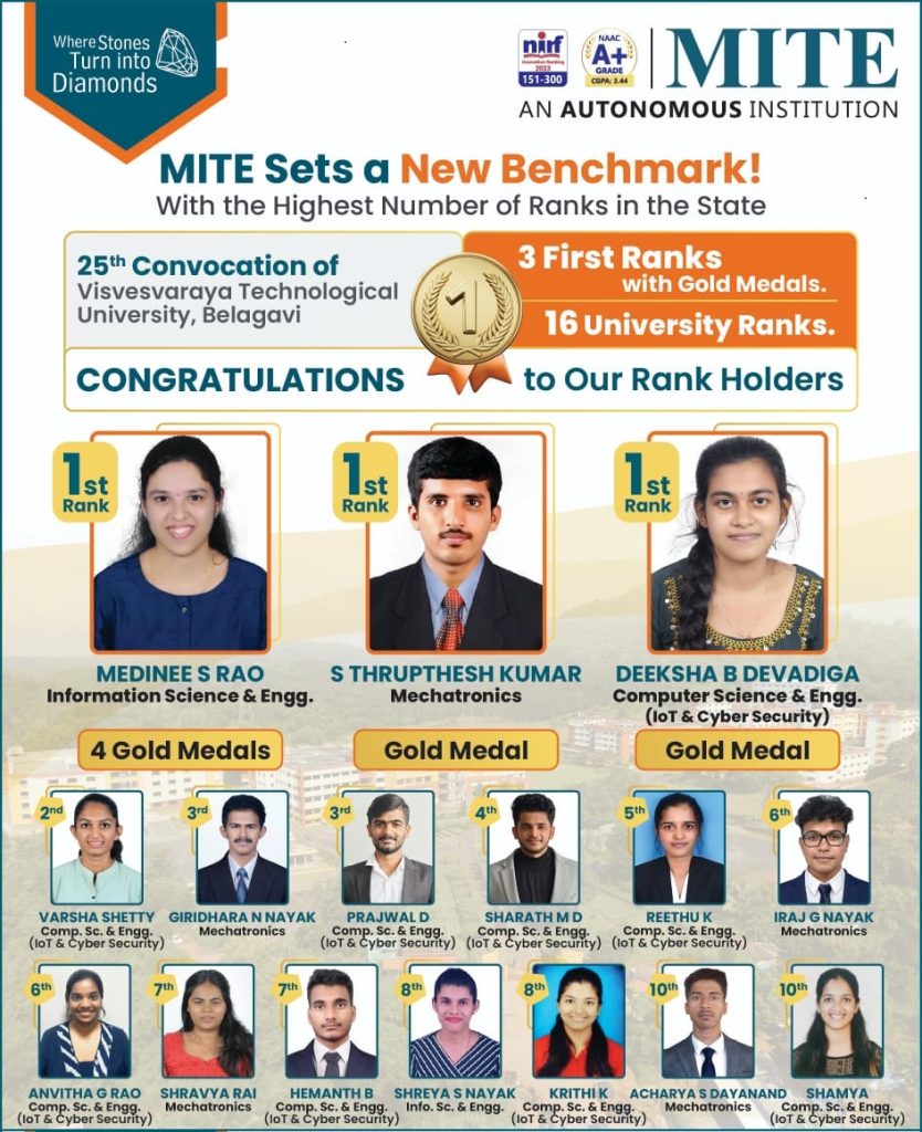 MITE has been consistently securing University ranks every year, thus demonstrating highest academic excellence.