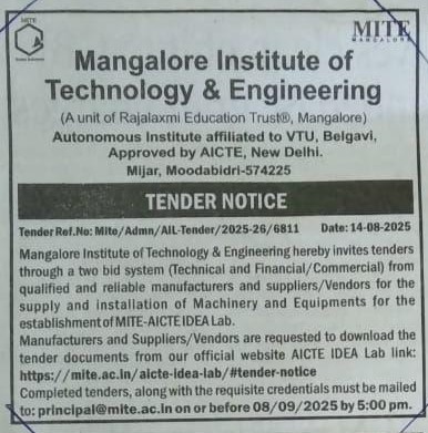 Mangalore Institute of Technology & Engineering, Moodabidri, was selected by AICTE to establish an IDEA Lab with a total budget of Rs. 90 lakhs on February 10, 2025.