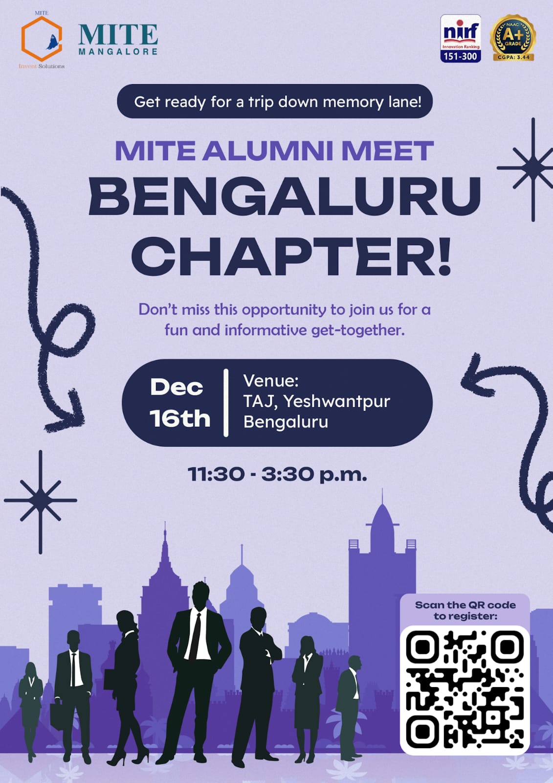 Don’t miss this opportunity to join us for a fun and informative get-together. Also it is a great opportunity for the alumnus of MITE transformed as successful Entrepreneurs to show case their Business Model through stalls.