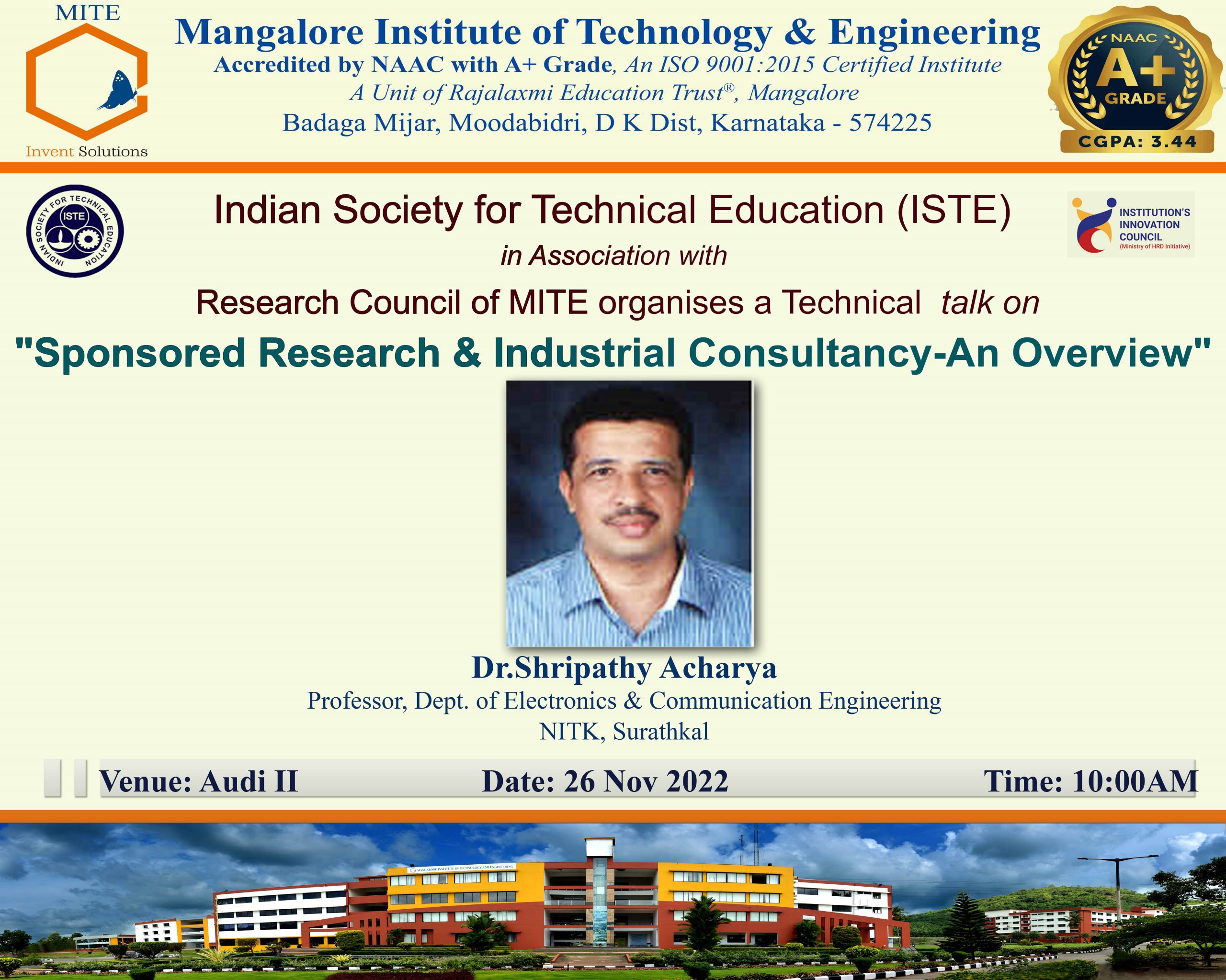 ISTE Technical talk on ” Sponsored Research & Industrial Consultancy-An Overview”